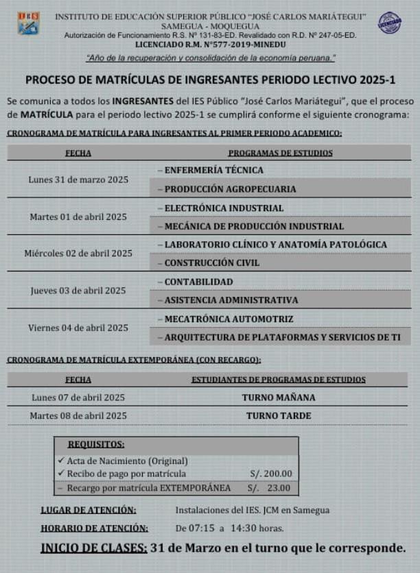 ¡Felicidades por dar el siguiente gran paso en tu camino educativo! En esta sección, encontrarás toda la información esencial para completar tu proceso de inscripción al IES Público «José Carlos Mariátegui» después de haber superado con éxito tu examen de admisión. Revisa cuidadosamente los siguientes requisitos y pasos para asegurar una transición fluida en el Instituto. ¡Estamos emocionados de darte la bienvenida a nuestra comunidad!
